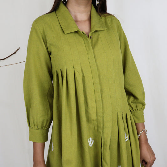 LEKHA Cotton-Linen Hand Embroidered, Shirt Dress Kurta