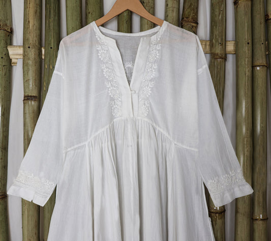 DEVIKA Pure Cotton, Hand Embroidery/ Chikankari Women Long Flared Dress