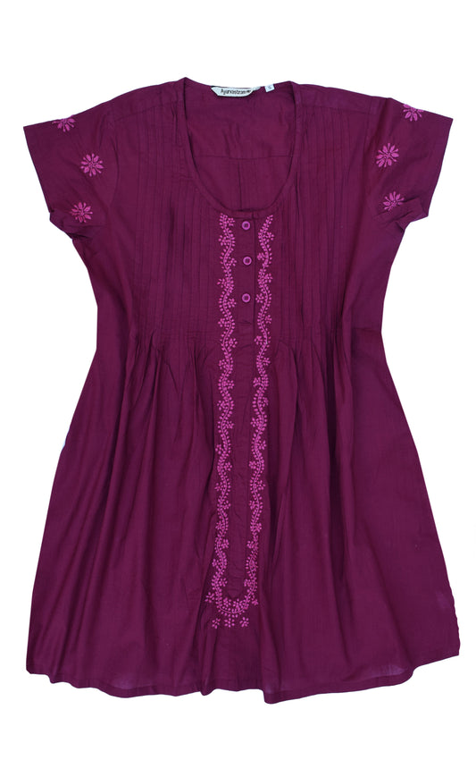 LILY Pure Cotton Hand Embroidered Long Placket Dress, Tunic, Kurti