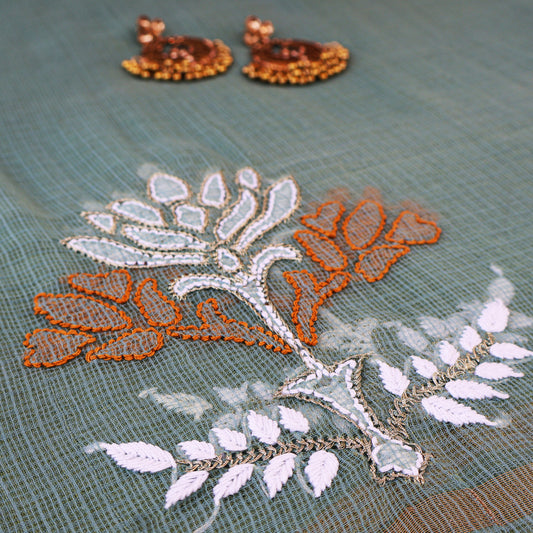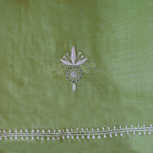 Silk Green Dupatta Hand Embroidered /Chikan work