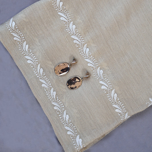 Silk Beige Dupatta Hand Embroidered /Chikan work