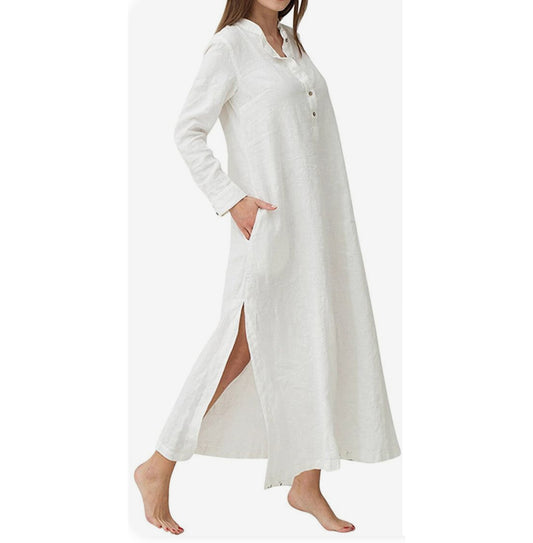 SHEETAL Linen Cotton Fashionable Long Loose Kurta Dress: Linen-Cotton 65/35