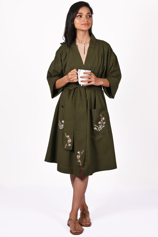 PALKI Cotton-Linen Hand Embroidered Stylish Lounge Robe: Made to Order/Customizable