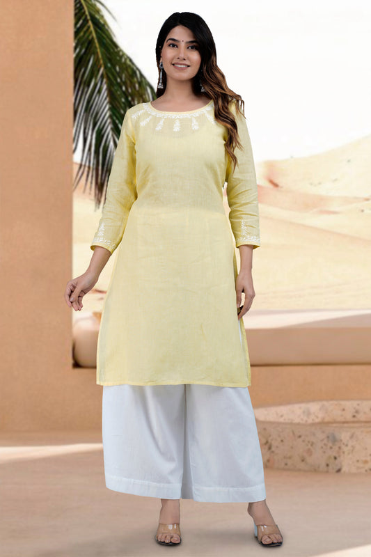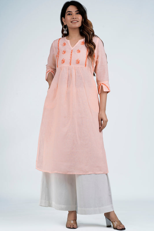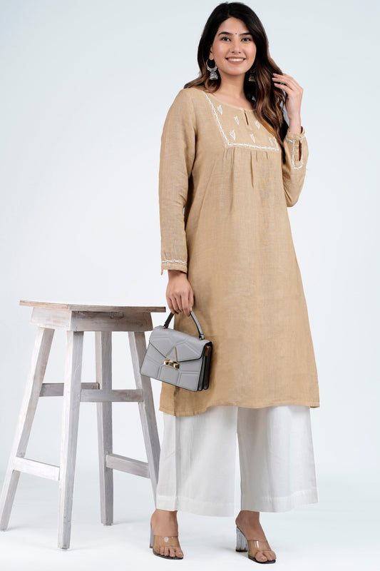 UDITA Linen-Cotton Hand Embroidered Tunic Kurti: Made to Order/Customizable