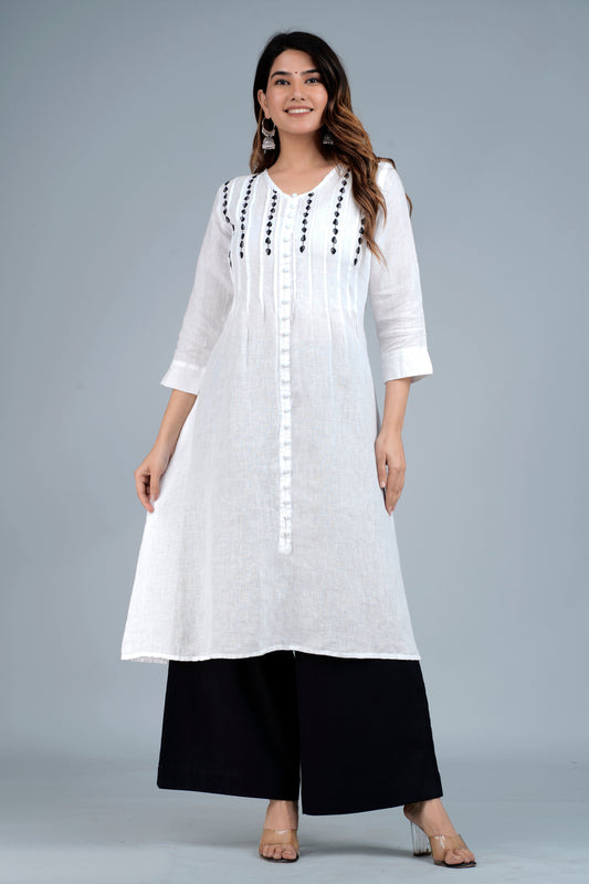 JUHI Linen-Cotton Hand Embroidered Tunic Kurti: Made to Order/Customizable