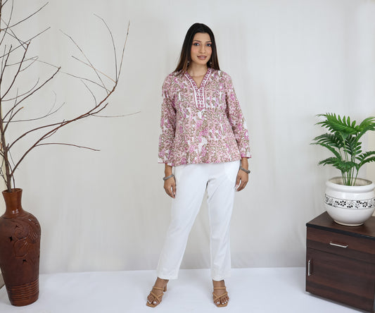 SUCHI Pure Cotton Block Print Hand Embroidered Top Regular and Plus Sizes