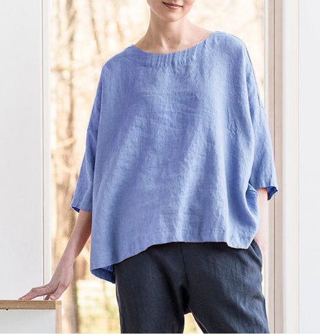 Gaia Linen-Cotton Drop shoulder Blouse Top