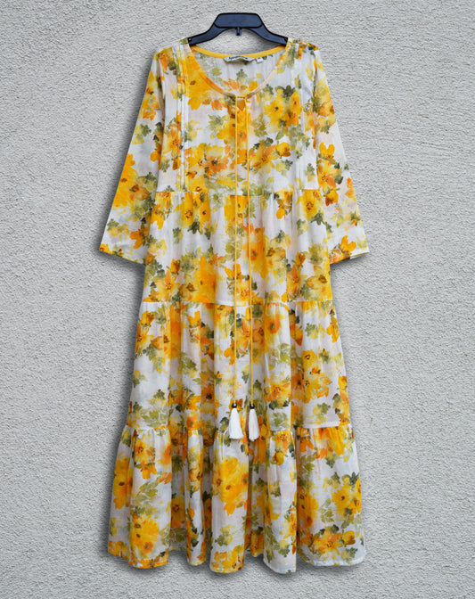 Aira Printed Pure Soft Cotton Tiered Long Tunic Kurta Dress: Regular and Plus Sizes