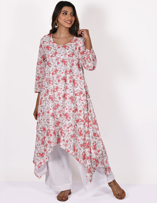 BINA Printed/Solid Pure Soft Cotton Uneven Hem Long Tunic Kurta Dress: Made to Order/Customizable