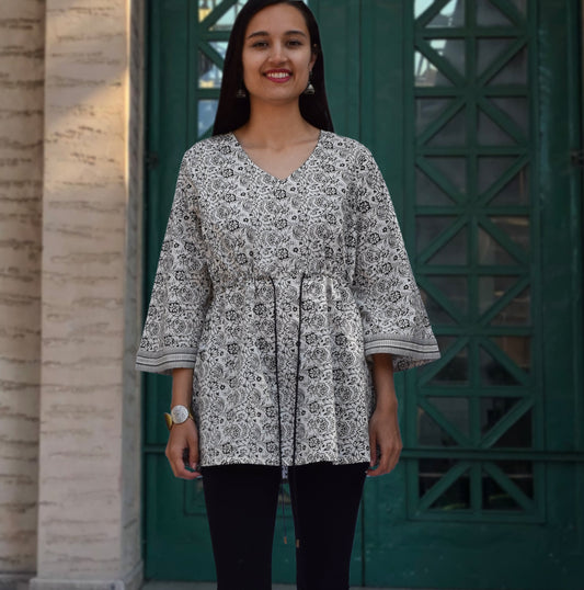 AKSHA Printed Pure Cotton Bell Sleeve Kimono Tunic Top, Regular and Plus Sizes: Made to Order/Customizable