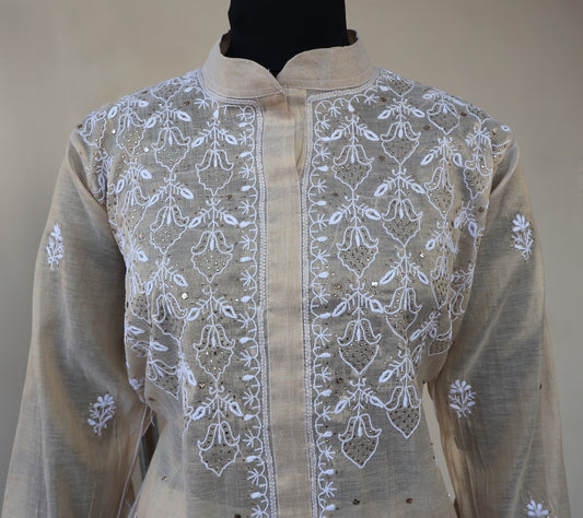 NEENA Chanderi Hand Embroidered/Chikankari Unstitched Kurta Set; Made to Order/ Customizable